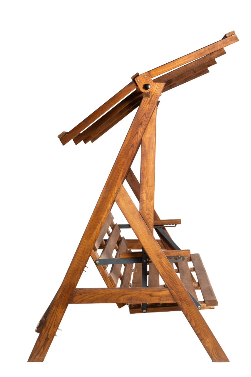 المقعد: 17060 سم الظهر: 17050 سم المظلة: 200*130 سم المسافة بين الساقين: 195 سم المسافة على ساق واحدة: 105 سم المادة: خشب الأكاسيا